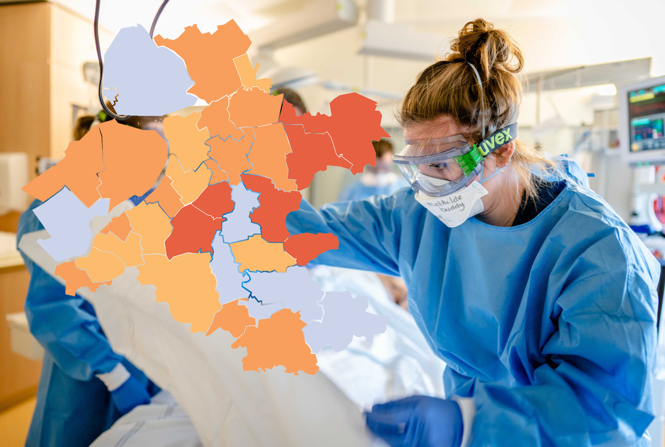 Dit geldt ook voor de regio's die een niveau lager op 'ernstig' staan.